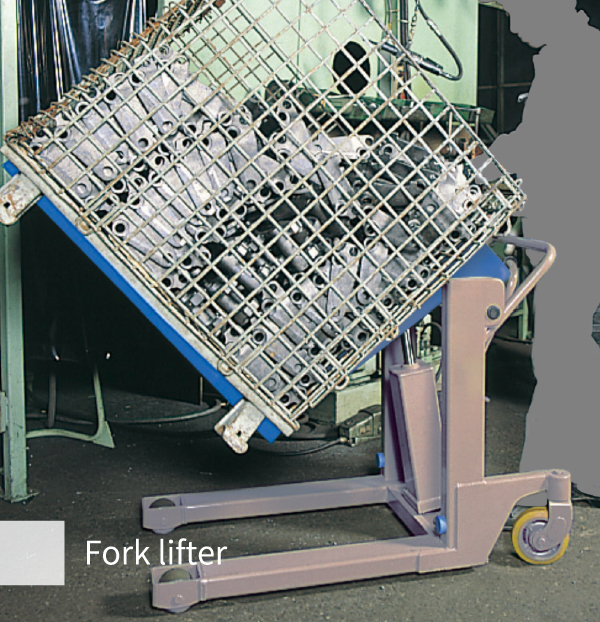 深さのあるボックスパレットでも、無理なく部材を取り出せる反転式リフター。様々な作業に対応する製品です。