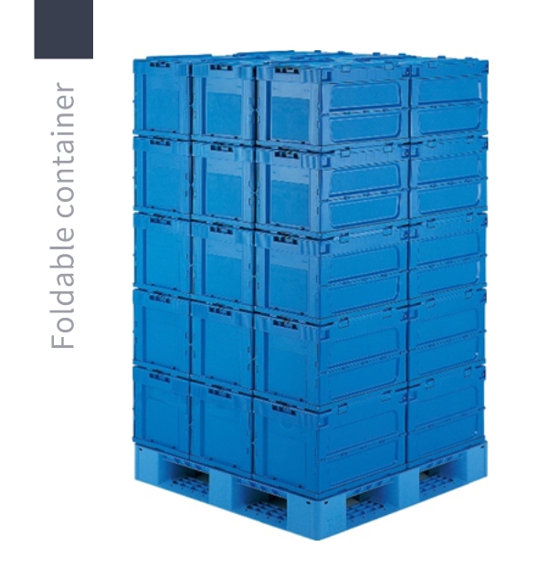未使用時の保管スペースを約1/4にします。返送時の輸送コストを抑え、効率的なリターナブル運用に貢献します。